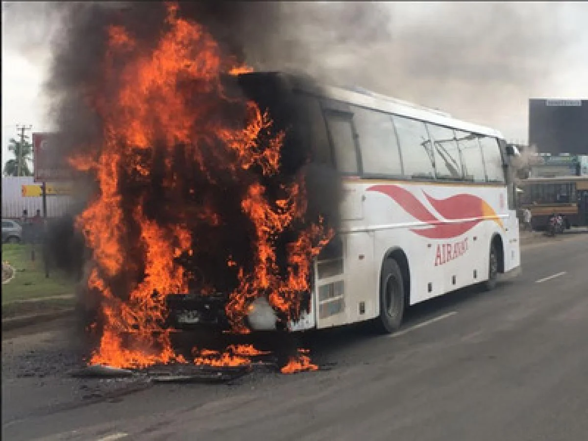 ಚೆನ್ನೈ ಗೆ ಸಮೀಪ ಬಸ್ ನಲ್ಲಿ ಇದ್ದಕ್ಕಿದ್ದಂತೆ ಬೆಂಕಿ ಕಾಣಿಸಿಕೊಂಡಿದ್ದು, ತಕ್ಷಣ ಪ್ರಯಾಣಿಕರನ್ನು ಕೆಳಗಿಳಿಸಲಾಯಿತು. ಬಸ್ ನಲ್ಲಿ ಸುಮಾರು 44 ಪ್ರಯಾಣಿಕರಿದ್ದರು. ಯಾರಿಗೂ ಯಾವುದೇ ಅಪಾಯವಾಗಿಲ್ಲ. ಆದರೆ ಲಗೇಜ್ ಗಳು ಸುಟ್ಟು ಭಸ್ಮವಾಗಿದೆ ಎಂದು ತಿಳಿದುಬಂದಿದೆ.