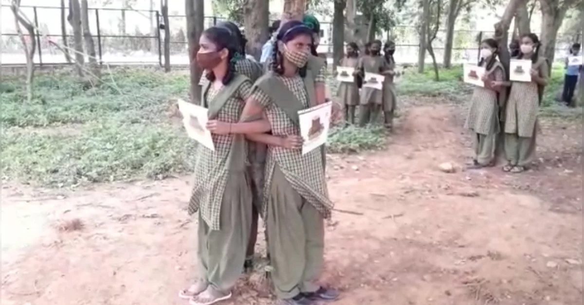 ಶಾಲಾ ಮಕ್ಕಳಿಂದ ಮರ ಕಡಿಯದಂತೆ ಮರಗಳನ್ನು ಅಪ್ಪಿಕೊಂಡು ಪ್ರತಿಭಟನೆ
