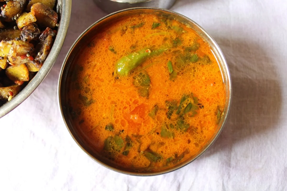 - ನಂತರ ಅದಕ್ಕೆ ರುಚಿಗೆ ತಕ್ಕಷ್ಟು ಉಪ್ಪು, ಬೆಲ್ಲ, ಹುಣಸೇಹಣ್ಣಿನ ರಸ, ಕೊತ್ತಂಬರಿ ಸೊಪ್ಪು, ರಸಂ ಪುಡಿ ಹಾಕಿ ಸ್ವಲ್ಪ ನೀರು ಸೇರಿಸಿ ಚೆನ್ನಾಗಿ ಕುದಿಸಿ